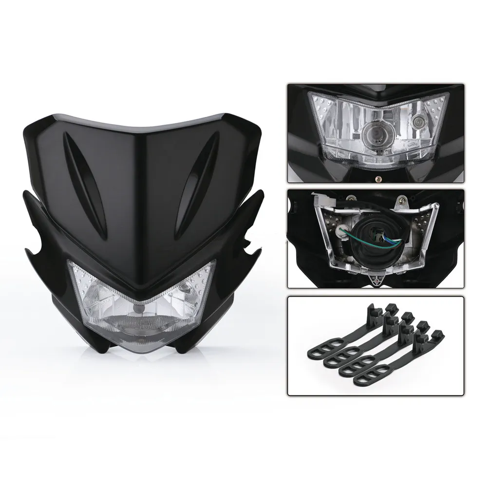 Upgrade your dirt bike with the SPEEDPARK Universal Motorcycle Headlight with Fairing, designed for riders who want both durability and performance. Crafted from high-quality plastic, this headlight offers a strong build with a sleek look, making it a reliable upgrade for off-road and on-road adventures.