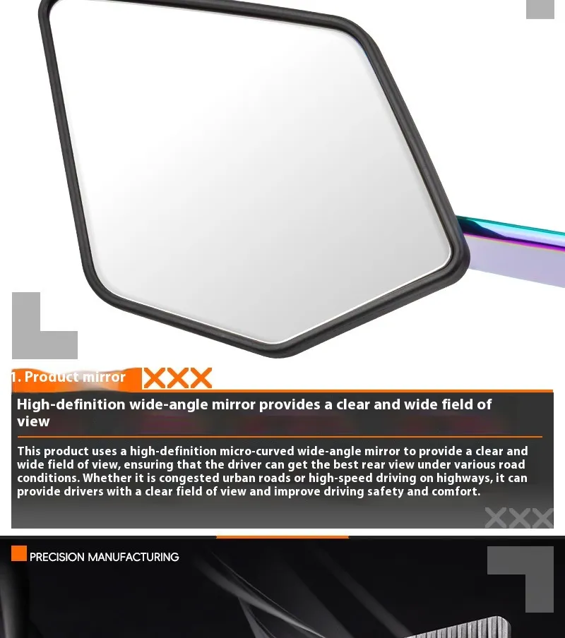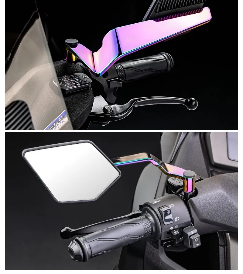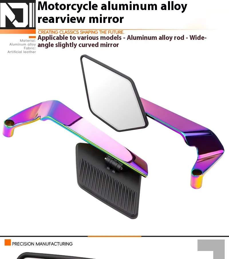 Made from high-grade aluminum alloy, these mirrors provide strength, vibration resistance, and lasting durability. Each pair features clear or tinted glass options with stylish finishes including plated silver, snakeskin texture, and dual-tone black-blue designs.