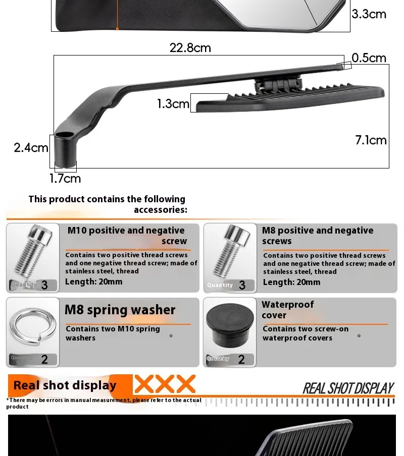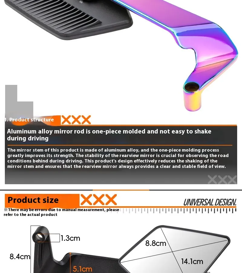 These universal-fit mirrors are easy to install and compatible with a wide range of bikes and e-scooters. Perfect for modified, retro, or daily commuter models, they deliver both aesthetics and reliable function for safer riding.