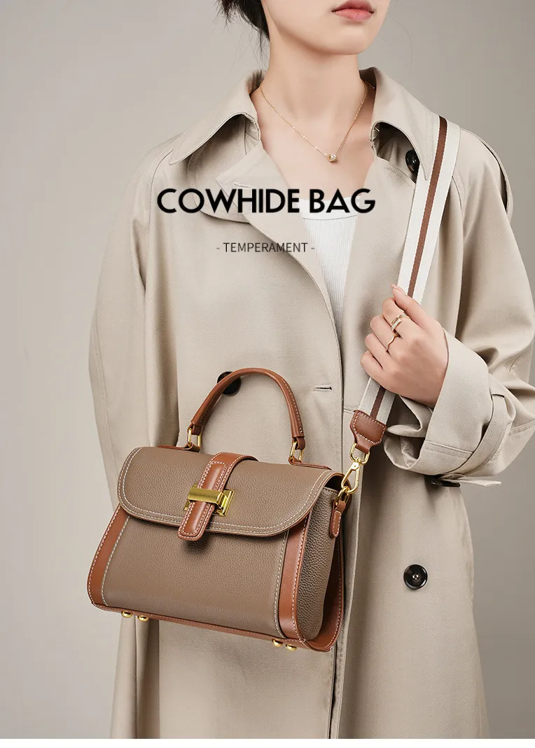 Upgrade your accessory game with this stylish and versatile women’s handbag made from premium first-layer cowhide leather. Featuring a vertical square silhouette, this medium-hardness bag offers the perfect blend of retro charm and modern functionality. Available in Elephant Gray and Creamy White, it's designed to complement both casual and formal outfits effortlessly.