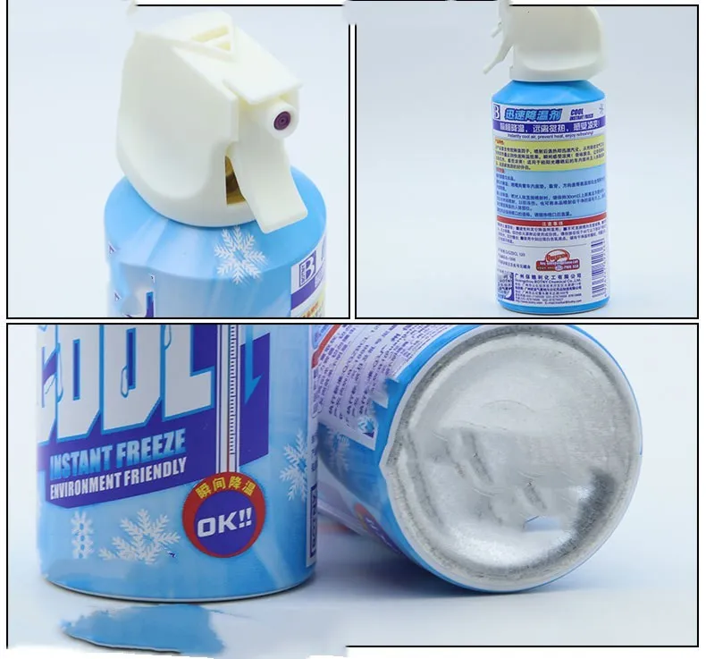 do not spray on the same area for a long time to prevent frostbite. Spray again as needed; Keep the nozzle unobstructed after use, please