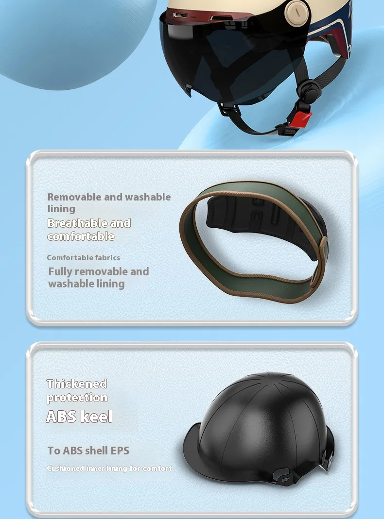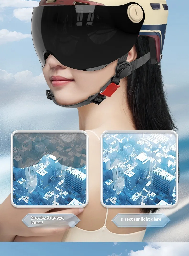 Available in multiple trendy shadesβincluding white, blue, khaki, black, and pinkβeach featuring HD short visors or sun-protection lenses for enhanced visibility. The sleek aerodynamic design minimizes wind resistance, while the comfortable fit makes it ideal for everyday city riding, even under the hot sun.