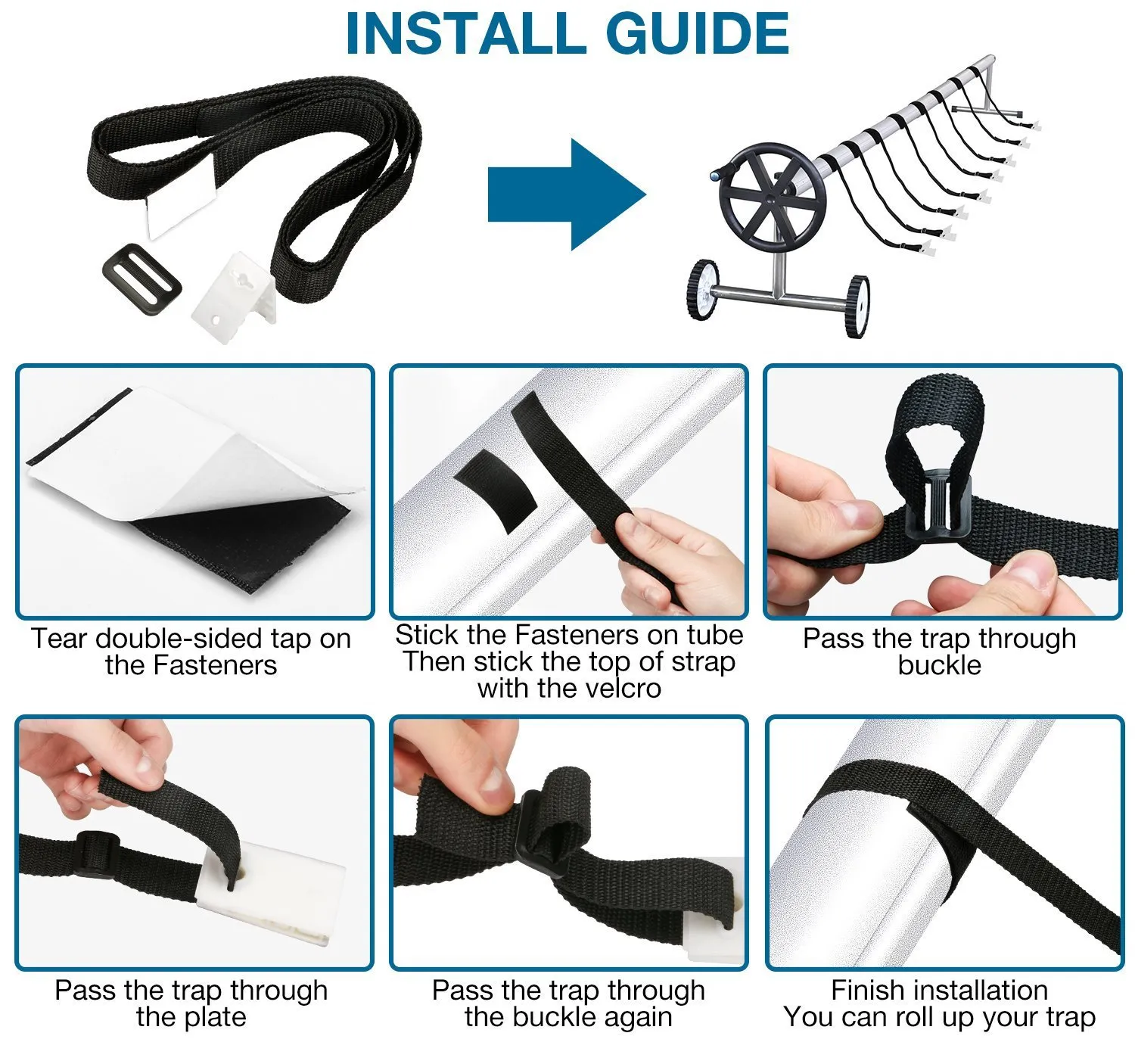 Perfect for residential and commercial pool setups, this strap kit enhances your pool’s energy efficiency by ensuring your solar cover stays in place and functions properly. Whether you're setting up a new reel or refreshing your current one, the Swimming Pool Solar Cover Reel Strap Kit – Film Collecting Car Rope & Tightening Accessories Set provides everything needed for a smooth, secure, and efficient pool cover operation.