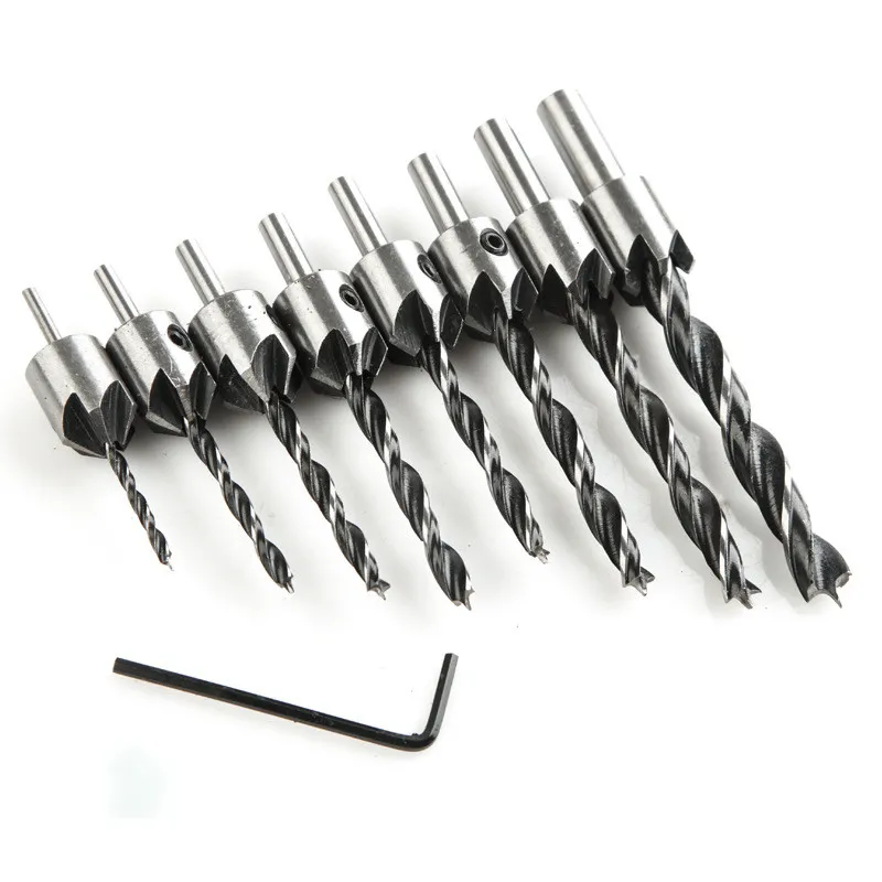 The Three-Point Countersunk Hole Drill Bit Set is a high-quality woodworking tool designed for precision drilling and reaming. Made from durable high-speed steel (HSS), these bits deliver excellent cutting performance, long service life, and reliable results in woodworking projects. The three-point design ensures stable positioning, reduces walking, and provides clean, accurate countersunk holes.
