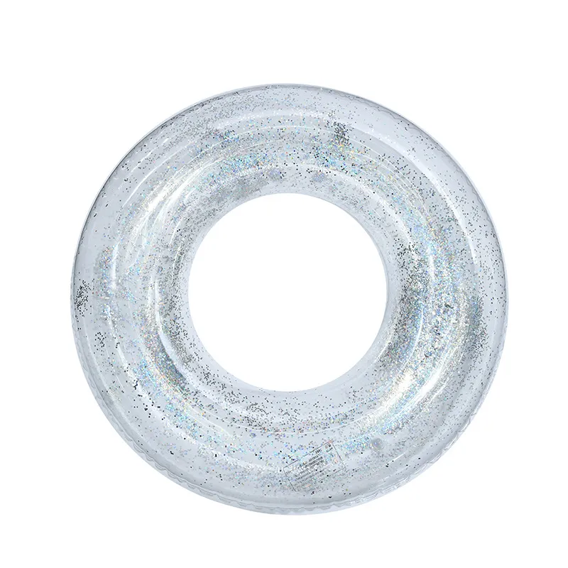 Transparent 60cm Sequined Inflatable Swimming Ring – Thickened PVC Pool Float for Adults