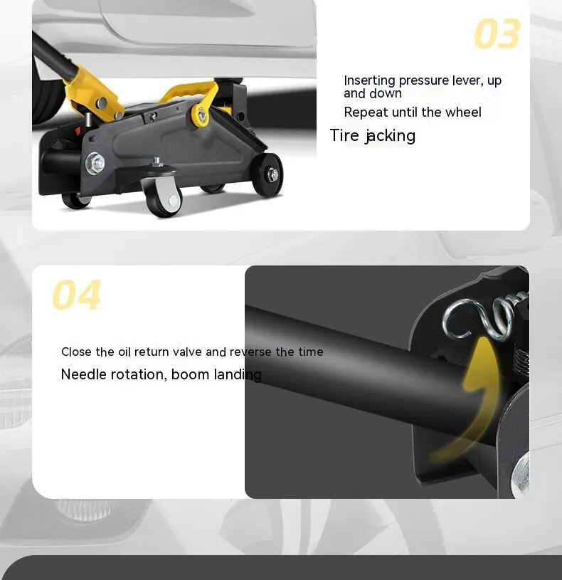This ultra-low hydraulic car jack is engineered for drivers who need reliable lifting performance even in challenging conditions. Its horizontal hydraulic design ensures smooth, powerful elevation, making it ideal for low-profile cars, sports vehicles, and compact sedans. The anti-freeze and heat-resistant fluid allows the jack to function effortlessly across a broad temperature range.