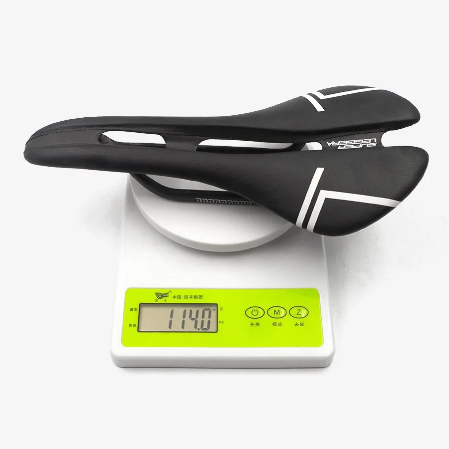 Ride with speed and comfort using this full carbon fiber bicycle saddle, engineered for road cyclists who demand performance and durability. Weighing only about 114 grams, this ultralight saddle reduces overall bike weight while maintaining maximum strength and stability. Its sleek design is perfect for competitive cycling and long-distance rides.
