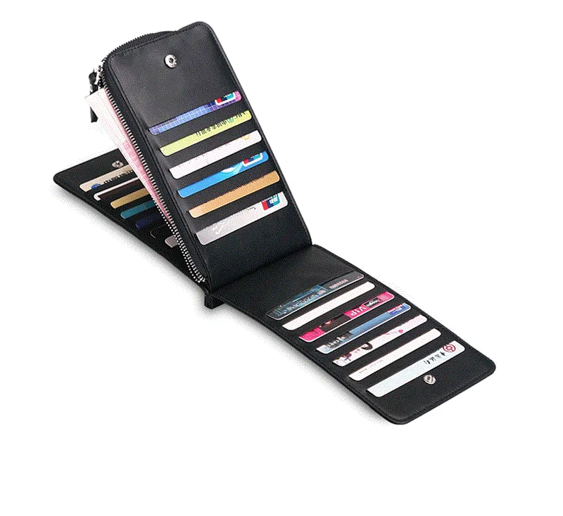Unisex PU Leather Card Holder Wallet – Large Capacity & Zippered