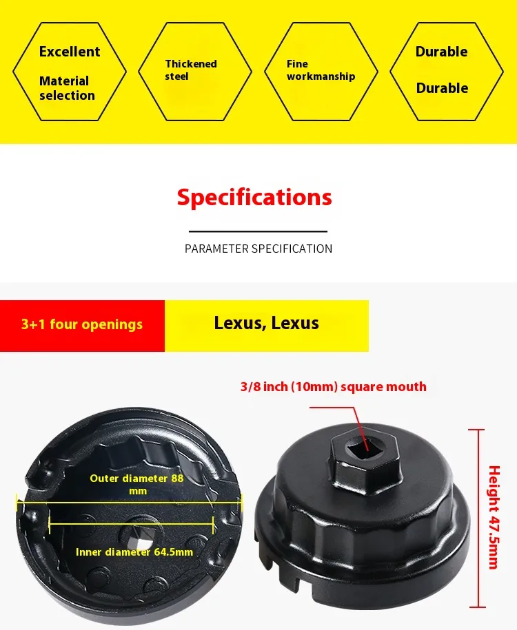 Compact and portable, this tool is a must-have for any automotive toolkit. Whether performing routine maintenance or emergency repairs, it simplifies the oil change process, extends the lifespan of your engine, and ensures consistent performance. Durable, reliable, and easy to use, itβs the ultimate solution for filter removal.