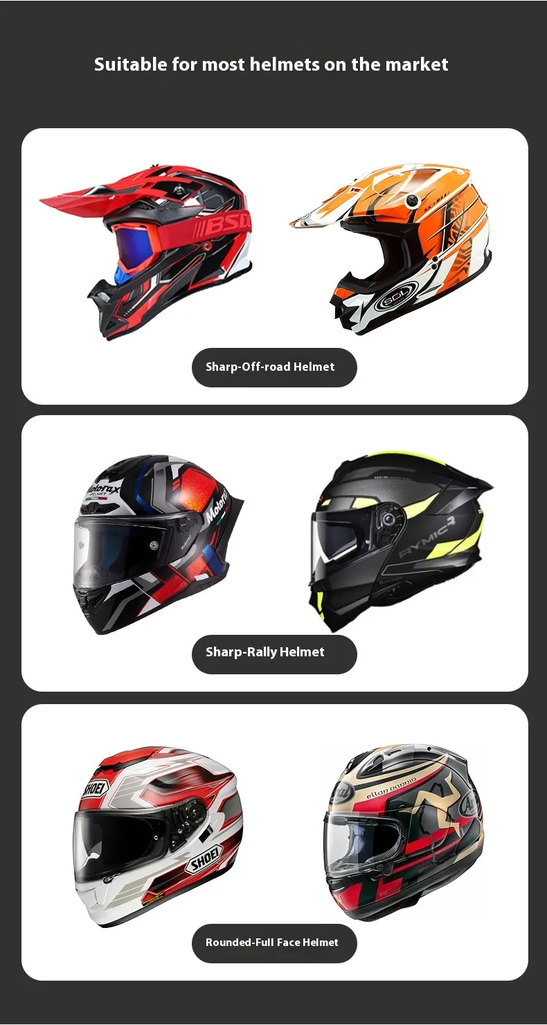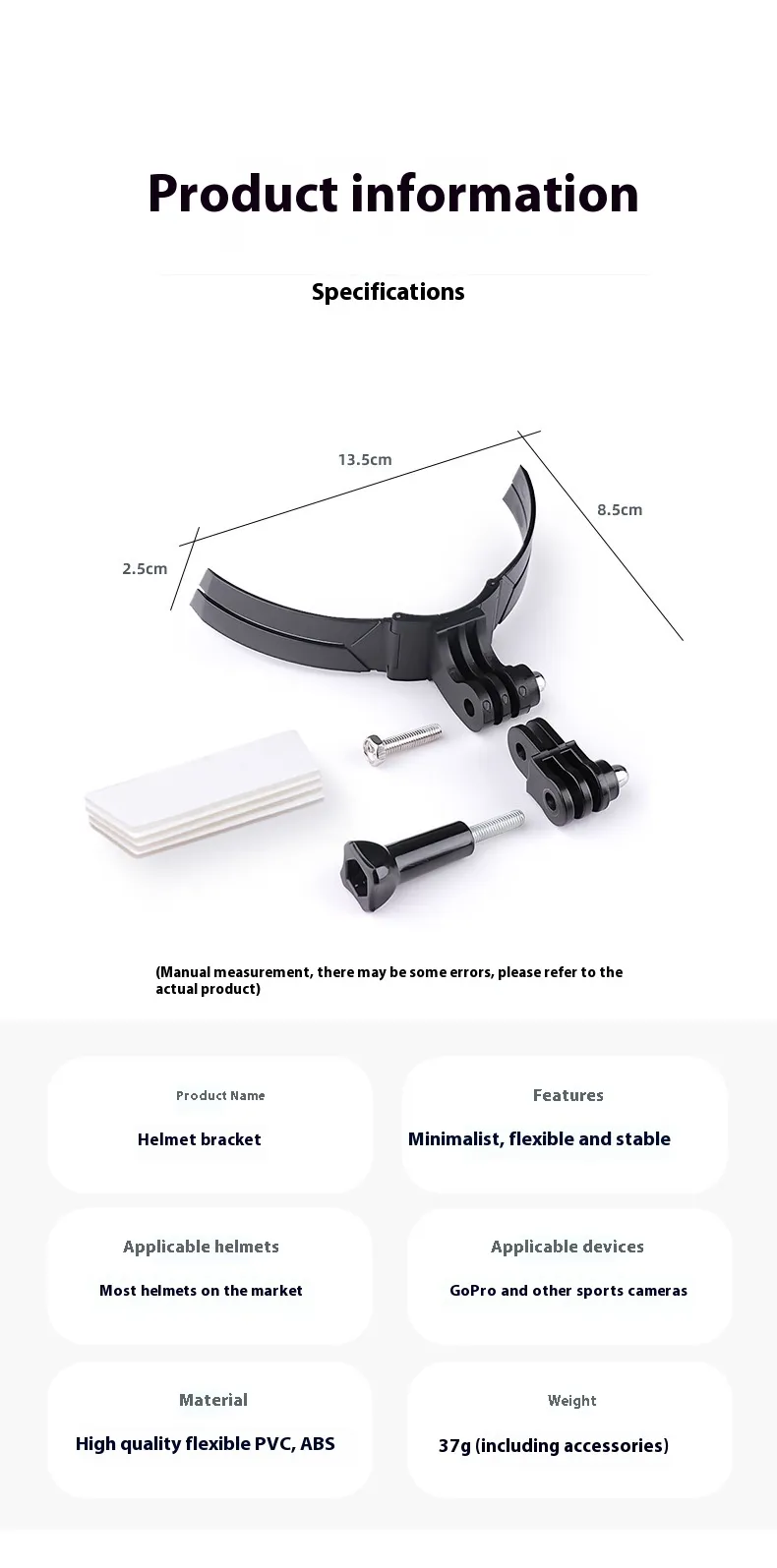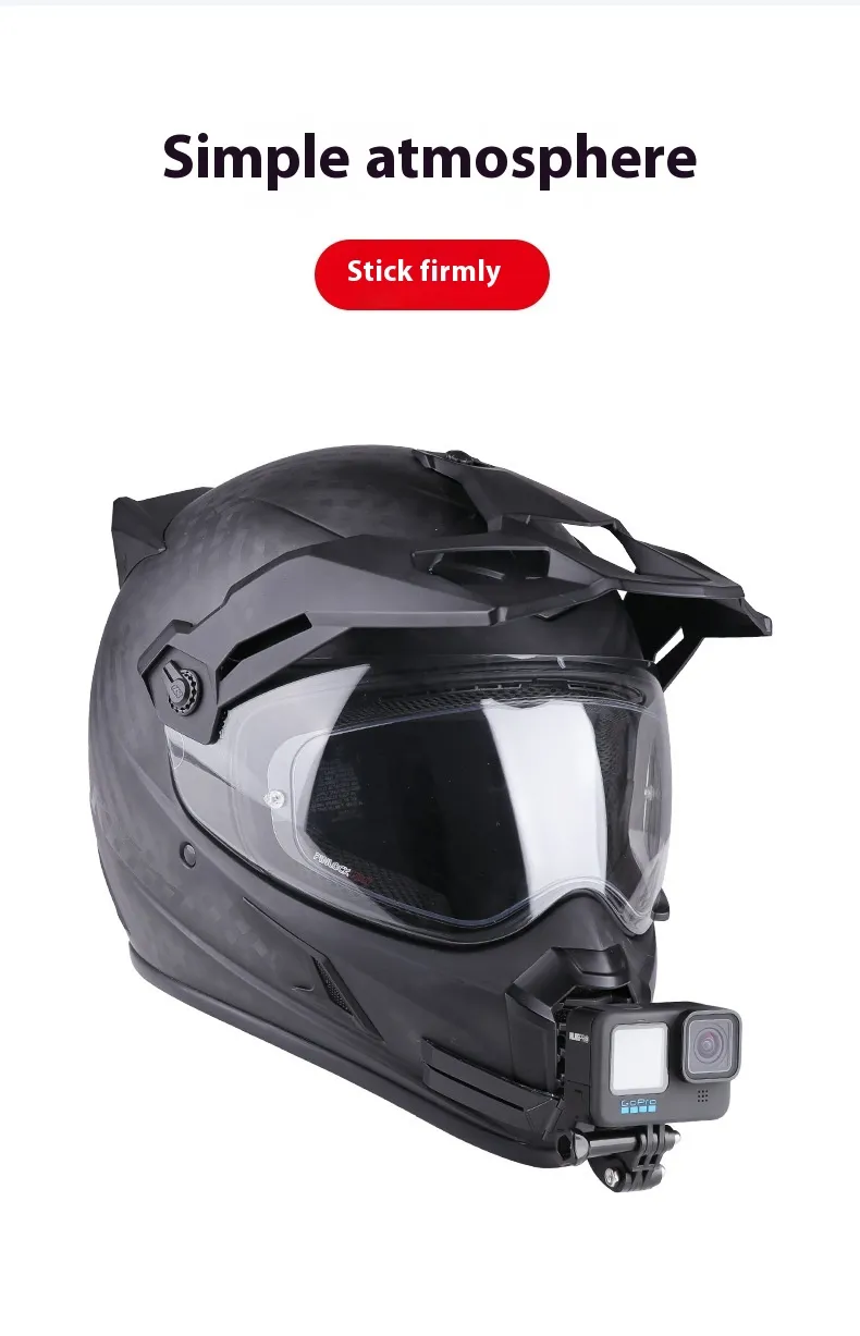 The sleek, minimalist design allows for easy installation and removal while maintaining a firm hold even during high-speed rides. Its flexible structure adapts to different helmet shapes, ensuring compatibility with a wide range of models. Perfect for riders who want hands-free video recording on the go.