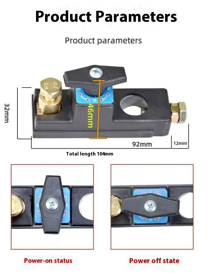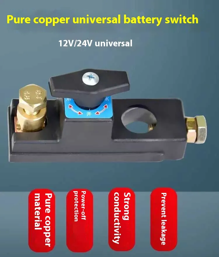 Protect your vehicleβs electrical system with this high-quality pure copper battery power-off switch. Designed for universal use across cars, SUVs, trucks, agricultural machinery, and marine equipment, it provides a dependable way to disconnect battery power and prevent electrical leakage, short circuits, and battery drain. Its durable copper construction ensures excellent conductivity and long-lasting performance.
