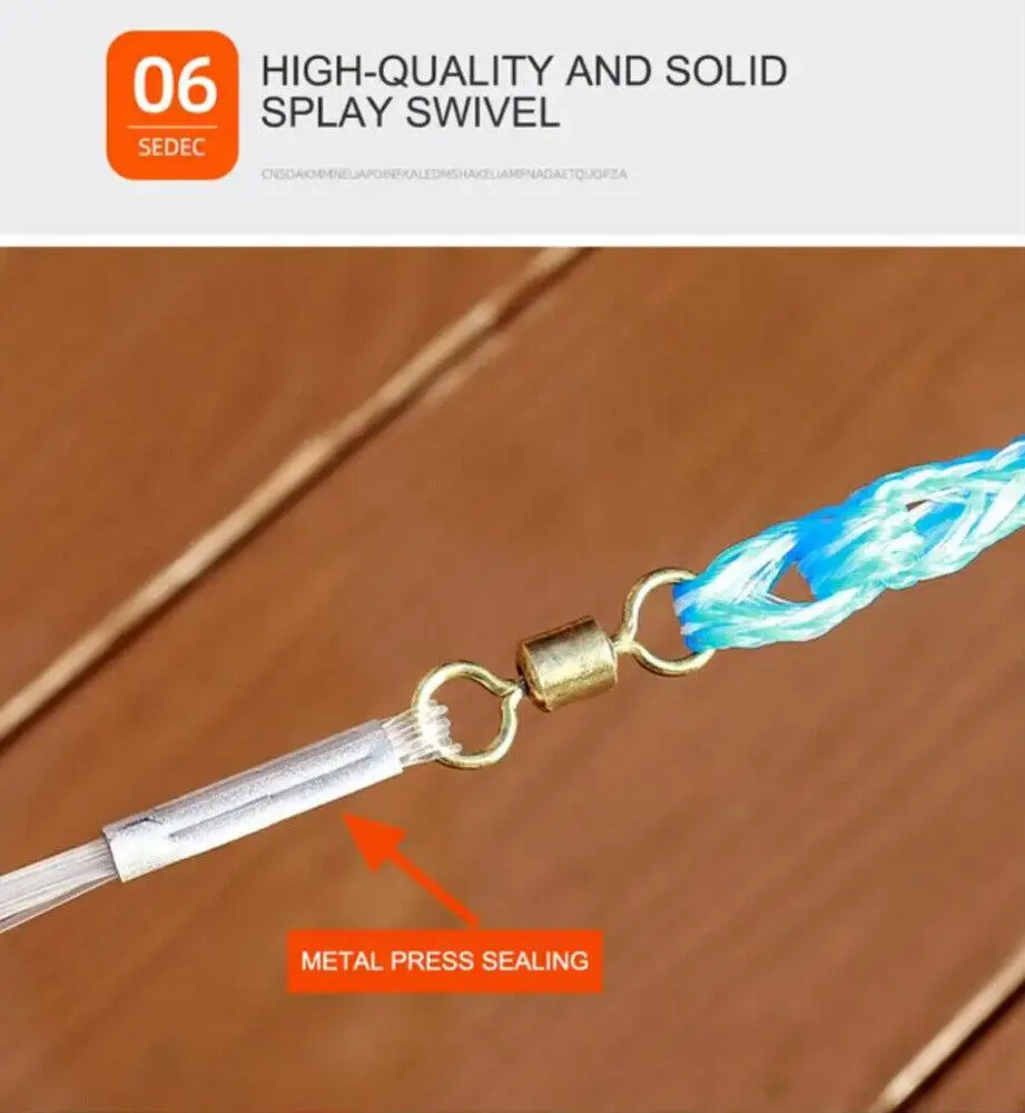 6. High-quality and solid splay swivel ring: the splay swivel ring is solid and durable, easy to spread and manage the net without winding