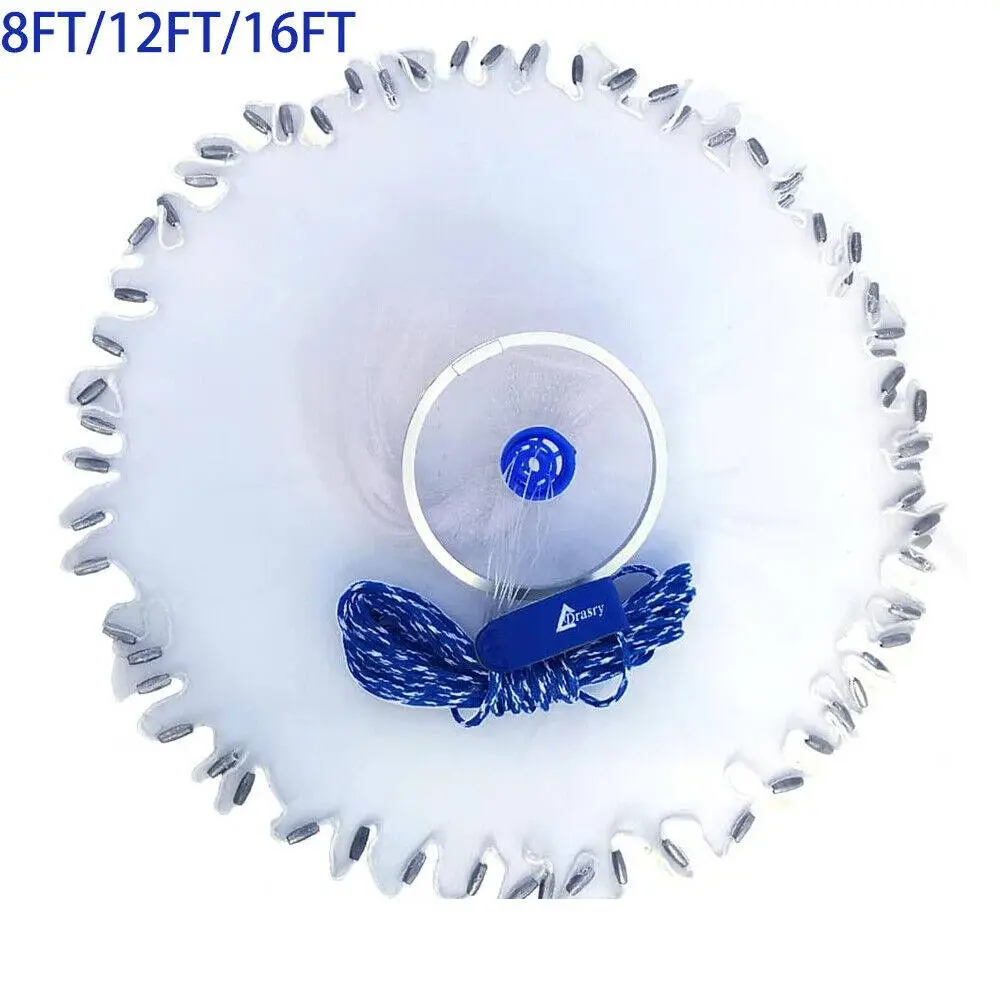 Experience professional-level fishing with this Upgrade Nylon Casting Net, designed for easy and efficient fish catching. Made with high-quality nylon mesh and iron steel sinkers, this hand-throw fishing net offers a fast sink rate and a wide coverage area, ensuring you catch more fish with less effort. Available in 8FT, 12FT, and 16FT sizes, it's perfect for both beginners and seasoned anglers.