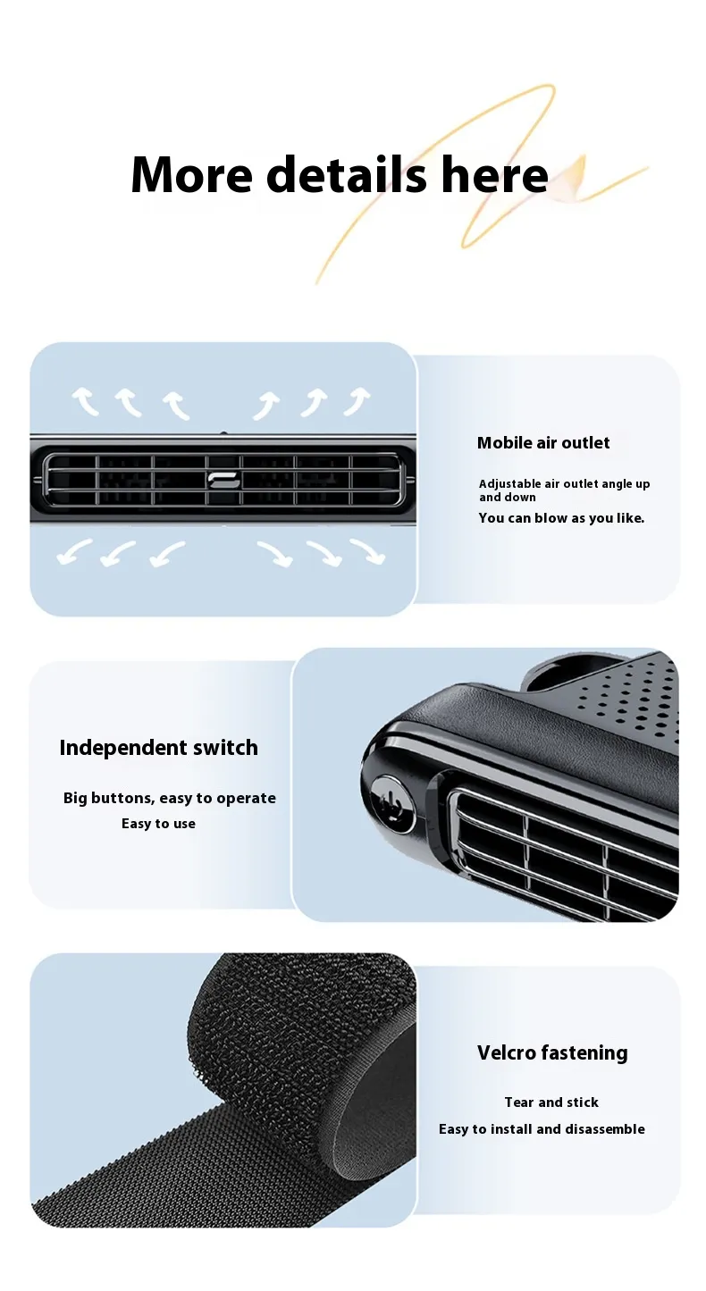 Experience cool comfort on every ride with the USB Rear Seat Car Fan, designed to deliver powerful airflow through its advanced bladeless turbine system. This compact yet efficient fan connects easily to any USB port, providing instant cooling relief for passengers in the back seat. With its modern aesthetic and quiet performance, it’s the perfect addition to any vehicle interior.