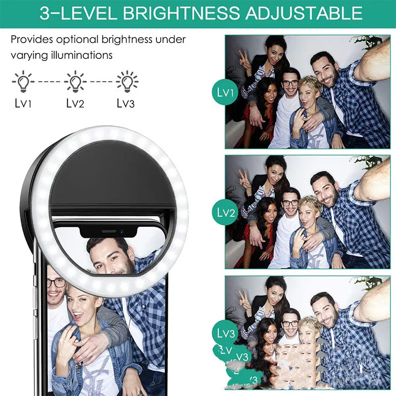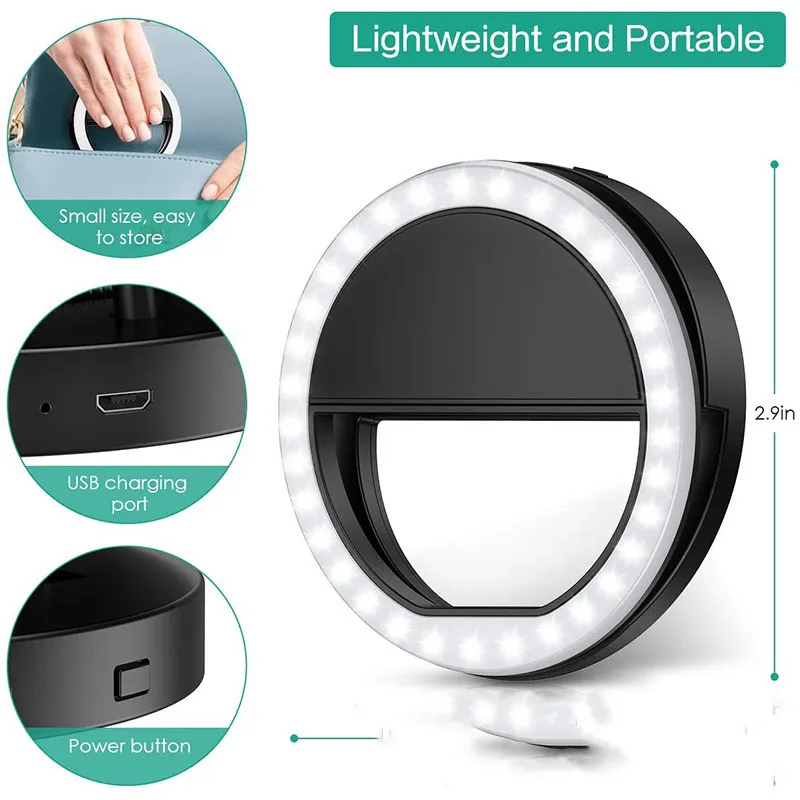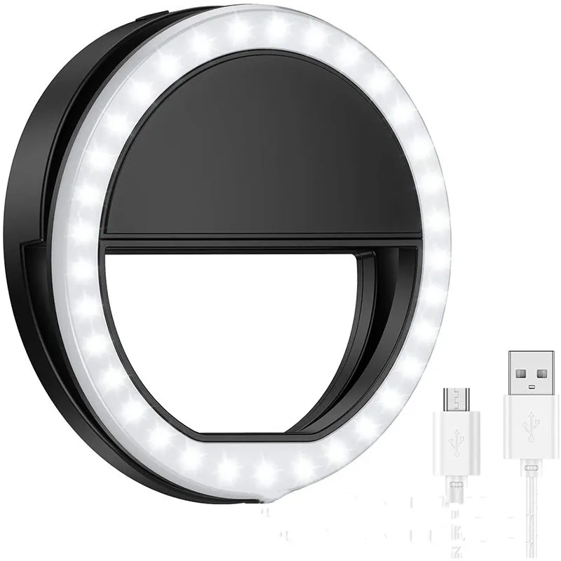 Enhance your selfies, video calls, and live streams with the USB Rechargeable Selfie Ring Light, featuring 36 high-brightness LED beads and three adjustable brightness levels. Whether you're vlogging, streaming, or taking stunning selfies, this portable clip-on light ensures flawless lighting in every shot.