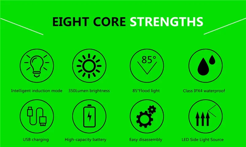 4 Modes: strong bright / weak bright / slow flash / SOS