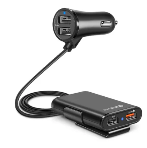 With 36W output, this charger powers smartphones, tablets, cameras, and GPS units with ease. Two USB ports provide 5V/2.4A, while the QC3.0-enabled ports support up to 12V/1.8A—ideal for fast charging compatible devices. The 5.6ft (1.7m) extension cable allows easy reach for back seat passengers.