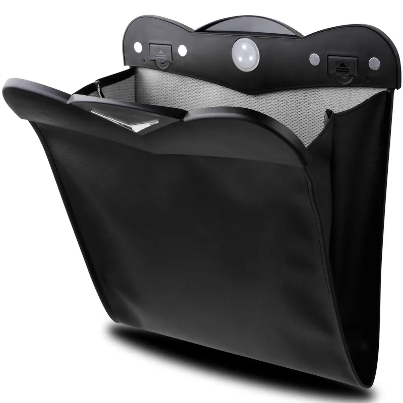 Vesone LED Car Trash Bag – Foldable PU Leather Hanging Bin