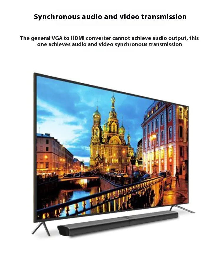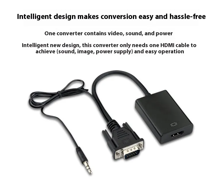 Easily connect your older devices to modern displays with this VGA to HDMI Adapter Cable, featuring integrated audio output and USB power support. Designed for plug-and-play convenience, this adapter allows you to convert VGA signals from PCs, laptops, or projectors to HDMI output for HDTVs, monitors, or digital displays. It supports resolutions up to 1080p, delivering clear visuals with synchronized sound.
