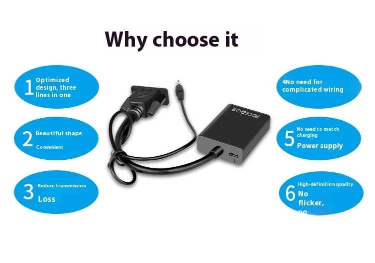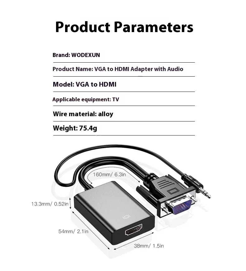 Built for reliability and ease of use, the 15cm patch cable includes a VGA input, 3.5mm audio port, and USB power connector, ensuring both video and audio signals are transmitted smoothly. The adapter is compact, portable, and requires no drivers or complicated setup, making it an ideal choice for classrooms, offices, and home media centers.