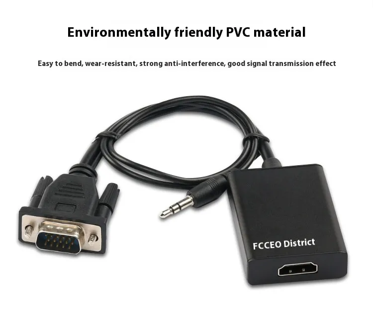 Packaged in a vibrant green box, this VGA to HDMI cable is ready for resale or professional presentation. Whether you're repurposing older hardware or adding connectivity options to your tech setup, this adapter provides a quick and cost-effective solution for VGA-to-HDMI conversion with audio integration.