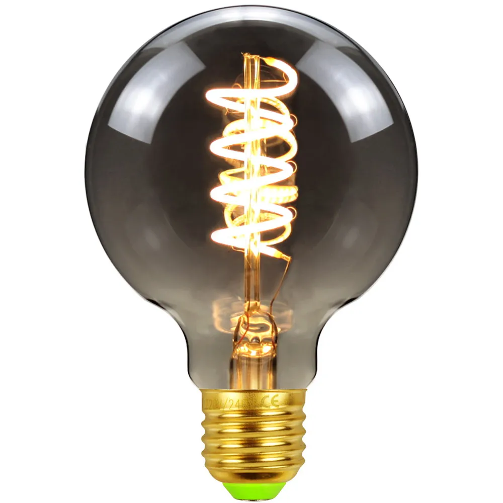 Add timeless character to your lighting with this retro-style G80 LED filament bulb, designed to replicate the charm of antique incandescent lamps. The single spiral filament and soot-tinted glass create a warm, nostalgic glow that enhances cafés, homes, restaurants, and decorative fixtures.