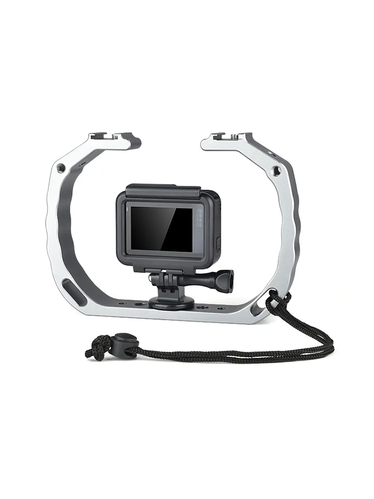 Equipped with two cold shoe interfaces, this vlog bracket allows you to attach additional accessories like microphones or lights to enhance your filming experience. The safety wrist strap ensures secure handling during use, even in wet or slippery conditions. Plus, the 1/4" and 3/8" threaded holes offer versatile mounting options for a wide range of equipment. The silicone rubber pad is designed to resist water damage, ensuring durability and long-term reliability, even in underwater conditions.