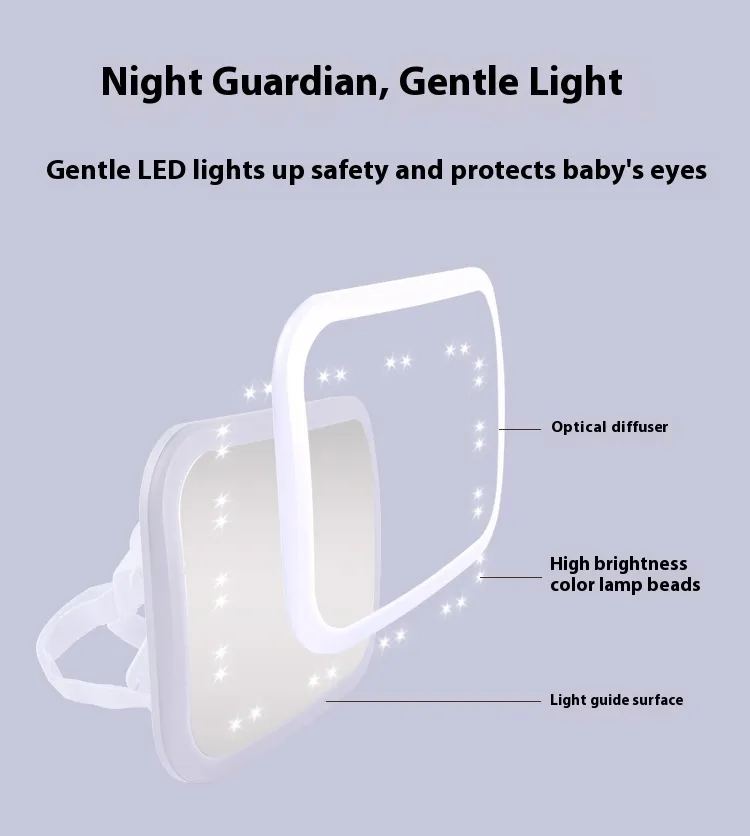 Crafted with a sturdy ABS frame, this large mirror (52.5cm × 34cm) provides a wide, clear reflection of the backseat. Available in multiple variants such as matte type, voice-activated with light, or remote-control versions, it suits different needs and car interiors. The added light feature ensures visibility even at night, making it practical for long drives with children.