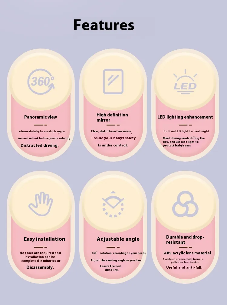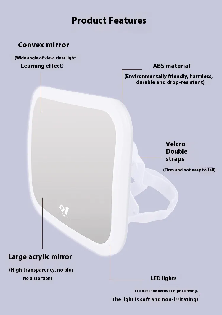 Easy to install with either a velcro strap or bracket mount, this rearview safety mirror is both durable and convenient. Whether for daily commutes or family road trips, the Voice Wake-up Rearview Mirror is the perfect solution to keep your child safe and your journey stress-free.