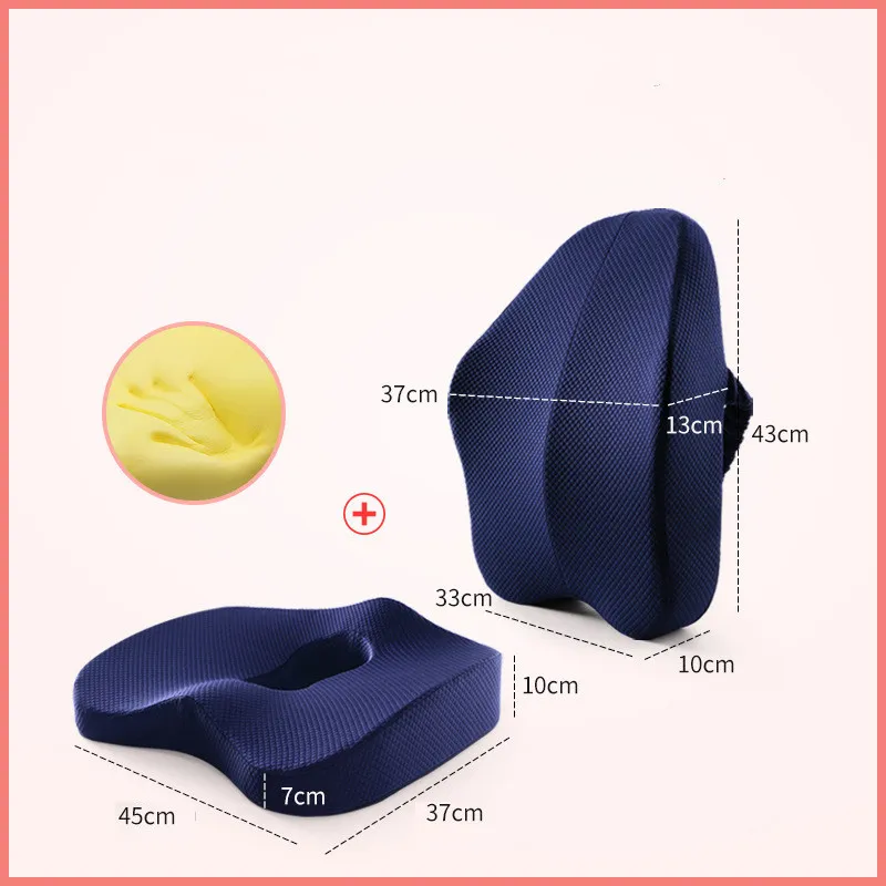 Upgrade your driving comfort with the Waist Rest Seat Cushions Suit – Memory Foam Car Cushion for Comfort Support, designed to provide ergonomic support during long hours in the car or office. This set includes both a waist cushion and seat cushion, offering full lower back and hip support. Available in solid color navy blue and silver gray, it blends effortlessly with your vehicle or workspace interior.