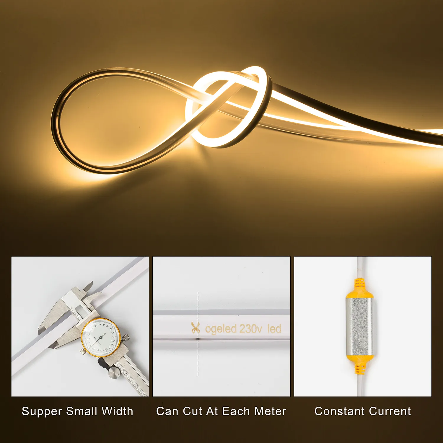 This bright neon LED strip light is designed to create a vibrant decorative atmosphere for both indoor and outdoor spaces. Its flexible structure allows easy shaping and installation along walls, ceilings, pathways, signage, and architectural outlines. With a smooth 180-degree beam angle, it delivers uniform illumination without visible light spots.