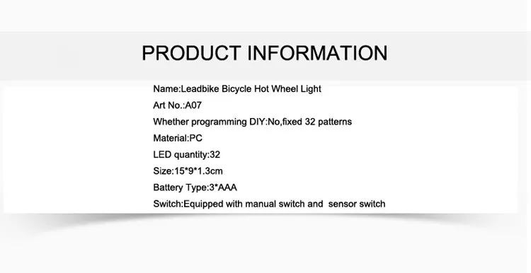Engineered with both a manual switch and intelligent motion sensor, the Waterproof LED Bike Wheel Light Strip activates automatically while riding and powers down when idle, preserving battery life. Designed for bikes with 20-inch wheels or larger, this light is made from durable plastic and is waterproof, making it ideal for night rides, urban commuting, or just showing off your personality on two wheels.