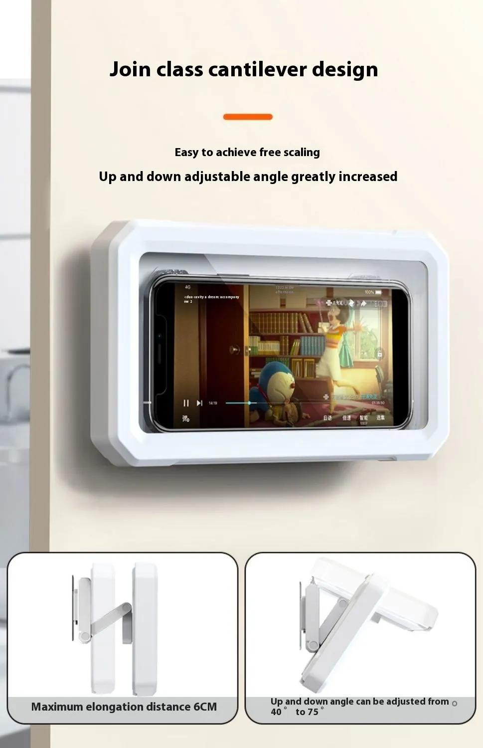 Its rotatable design ensures the ideal viewing angle from any position, whether you're brushing your teeth, relaxing in the bath, or multitasking. The wall-mounted installation keeps your phone secure, dry, and off the counter, reducing clutter and preventing accidental slips or splashes.