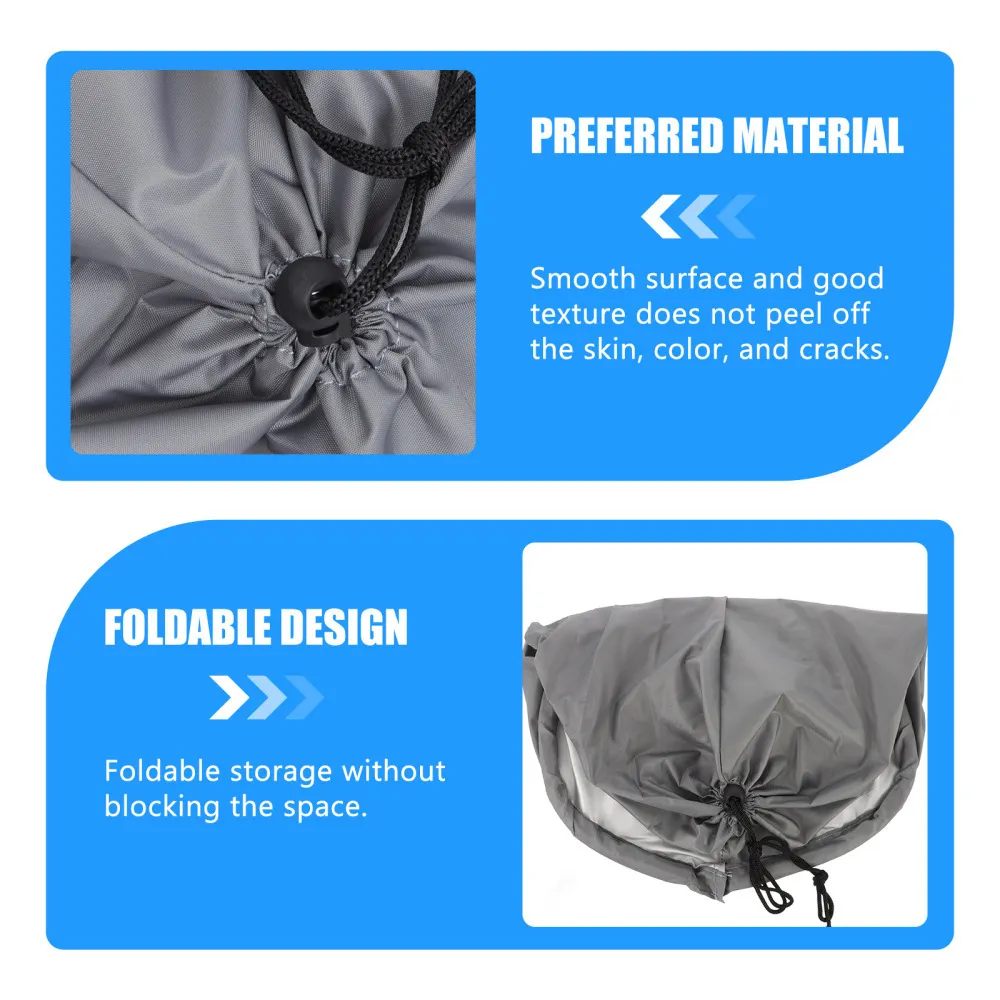 Crafted from high-quality umbrella cloth, the cover offers excellent waterproof performance and long-term durability. The material resists moisture, UV rays, and dirt, maintaining its protective strength through all weather conditions. A convenient drawstring closure ensures a snug fit, keeping the cover securely in place even in windy environments.