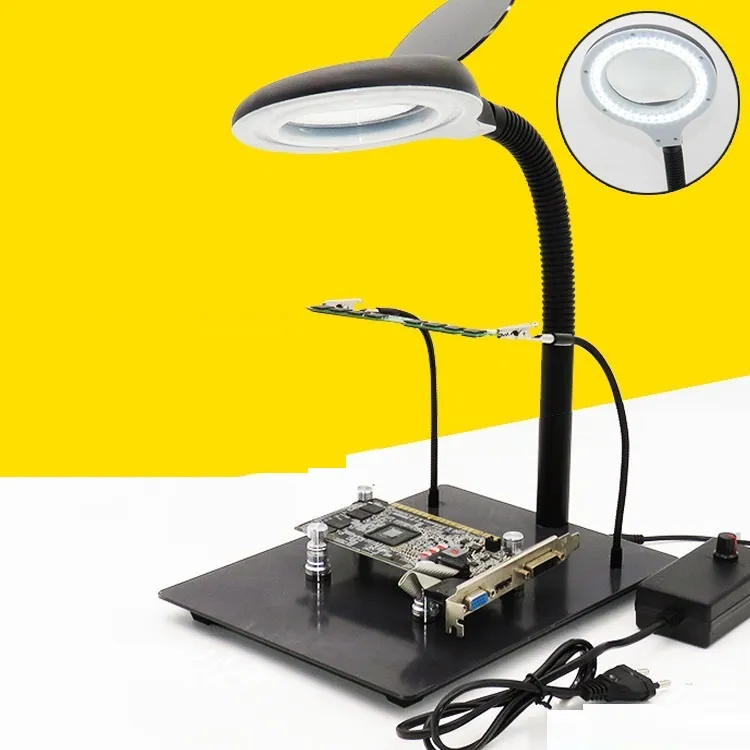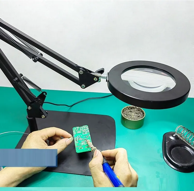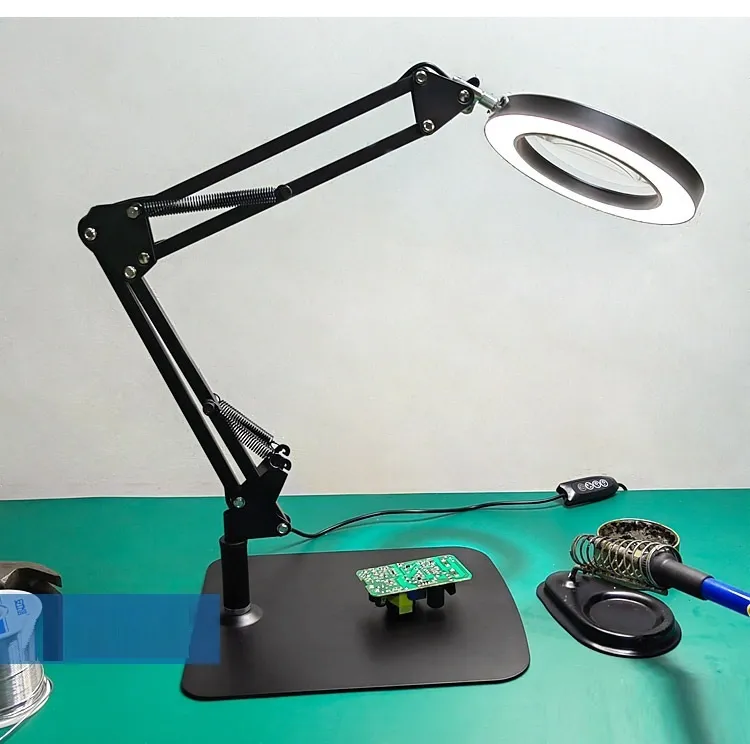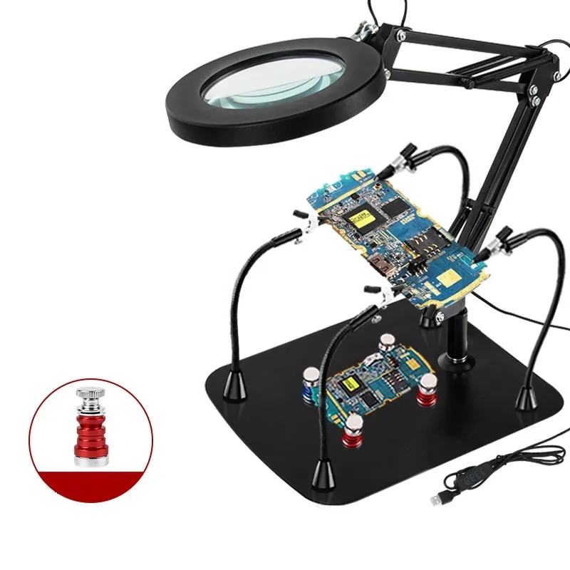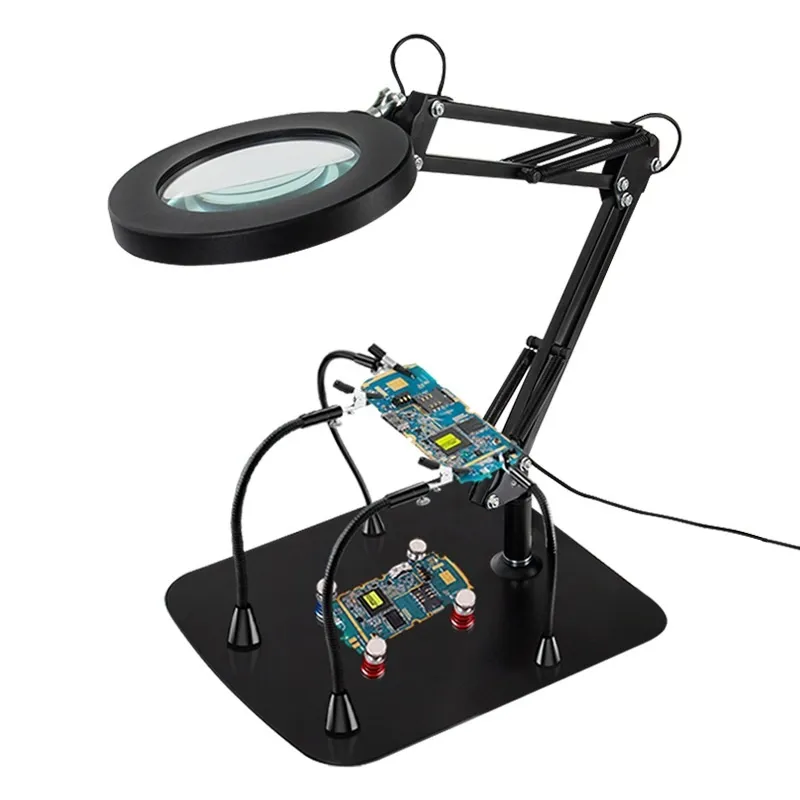 The Welding Magnifying Glass Desktop Lamp is a professional auxiliary fixture designed for precision repair work. Equipped with a built-in magnifier and LED lighting, this tool provides clear visibility, making it ideal for delicate tasks such as mobile phone repair, circuit board soldering, and jewelry inspection.