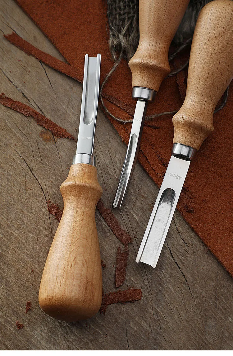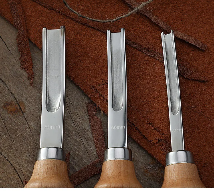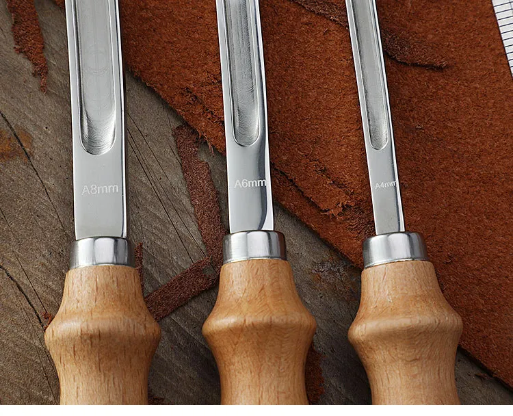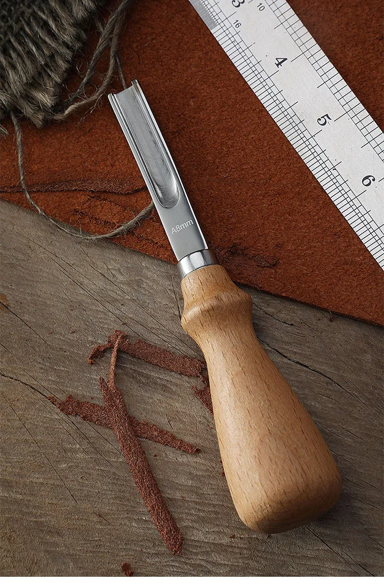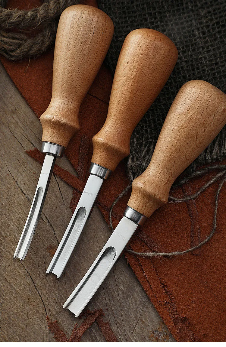 Crafted from high-quality stainless steel with a durable beech wood handle, the tool provides excellent sharpness, comfort, and control. Available in multiple sizes (4mm, 6mm, and 8mm), it allows for versatile applications, whether youβre skiving fine leather or working on thicker materials. The ergonomic wooden handle ensures a firm grip, reducing hand fatigue during extended use.