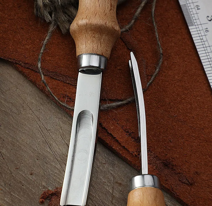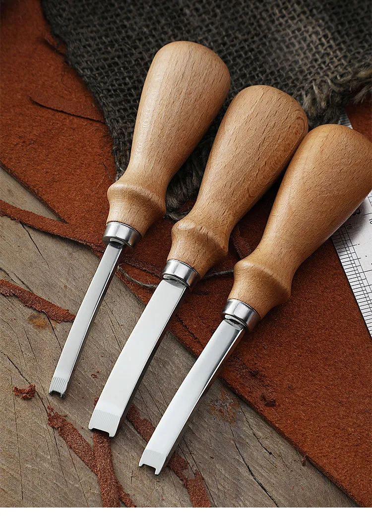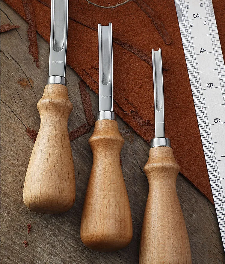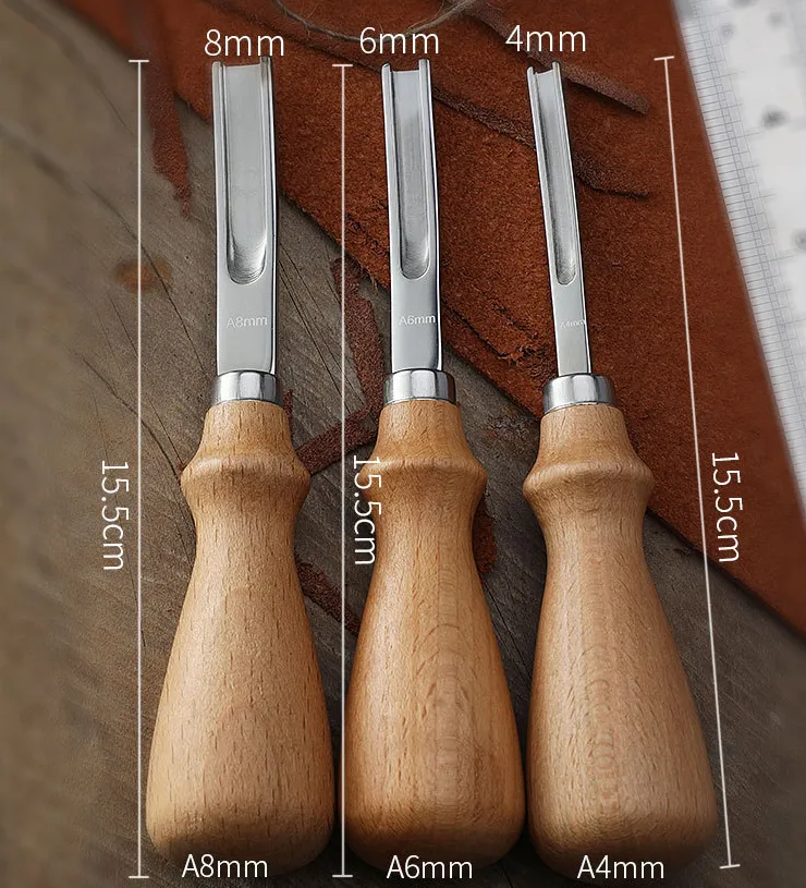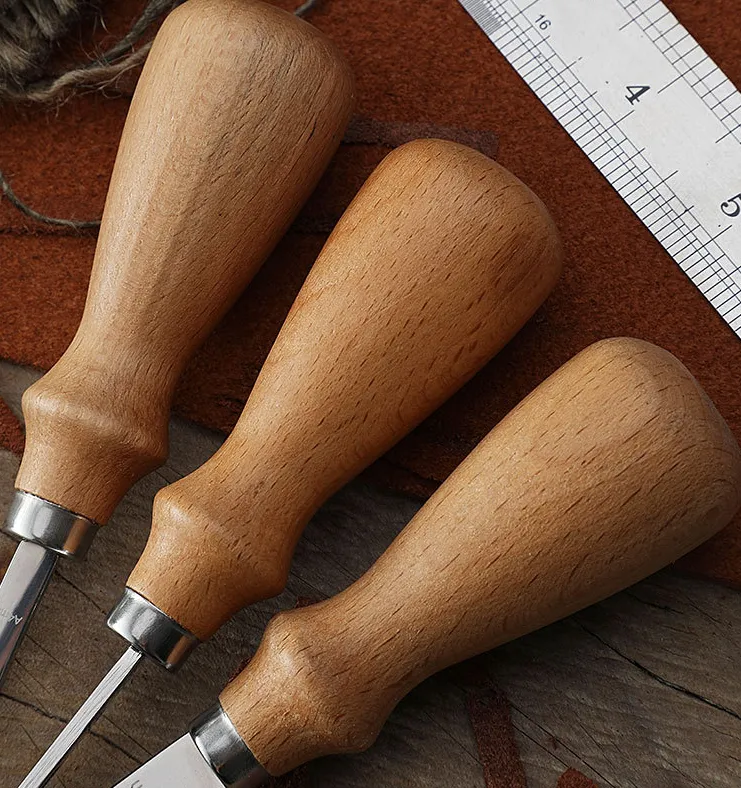 Crafted from high-quality stainless steel with a durable beech wood handle, the tool provides excellent sharpness, comfort, and control. Available in multiple sizes (4mm, 6mm, and 8mm), it allows for versatile applications, whether youβre skiving fine leather or working on thicker materials. The ergonomic wooden handle ensures a firm grip, reducing hand fatigue during extended use.
