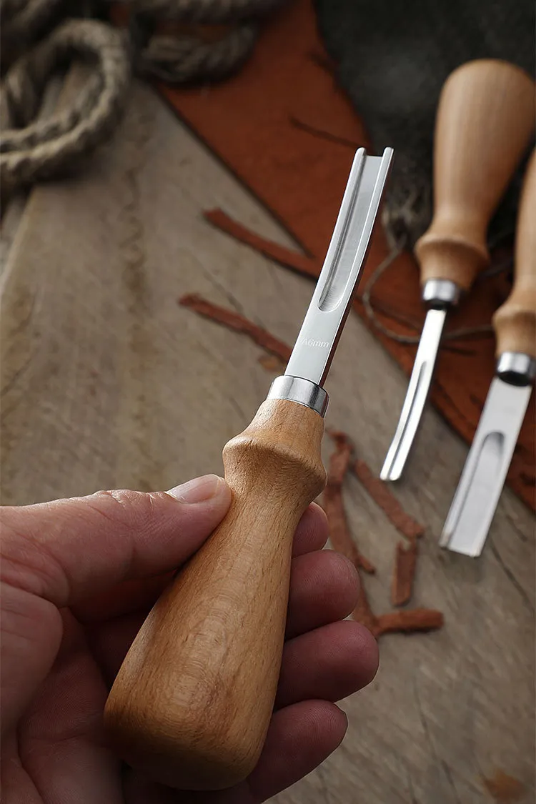 Crafted from high-quality stainless steel with a durable beech wood handle, the tool provides excellent sharpness, comfort, and control. Available in multiple sizes (4mm, 6mm, and 8mm), it allows for versatile applications, whether youβre skiving fine leather or working on thicker materials. The ergonomic wooden handle ensures a firm grip, reducing hand fatigue during extended use.