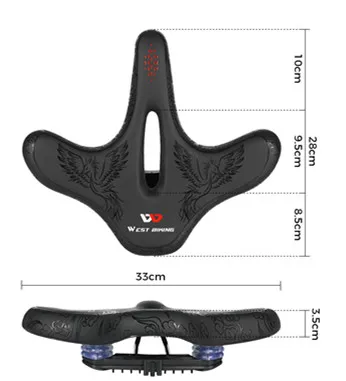 Measuring 33×28×3.5 cm, this wide bicycle saddle is compatible with most standard bikes. Its stylish black finish complements any frame, while the ergonomic structure makes it a reliable choice for riders seeking both support and relief on every ride.