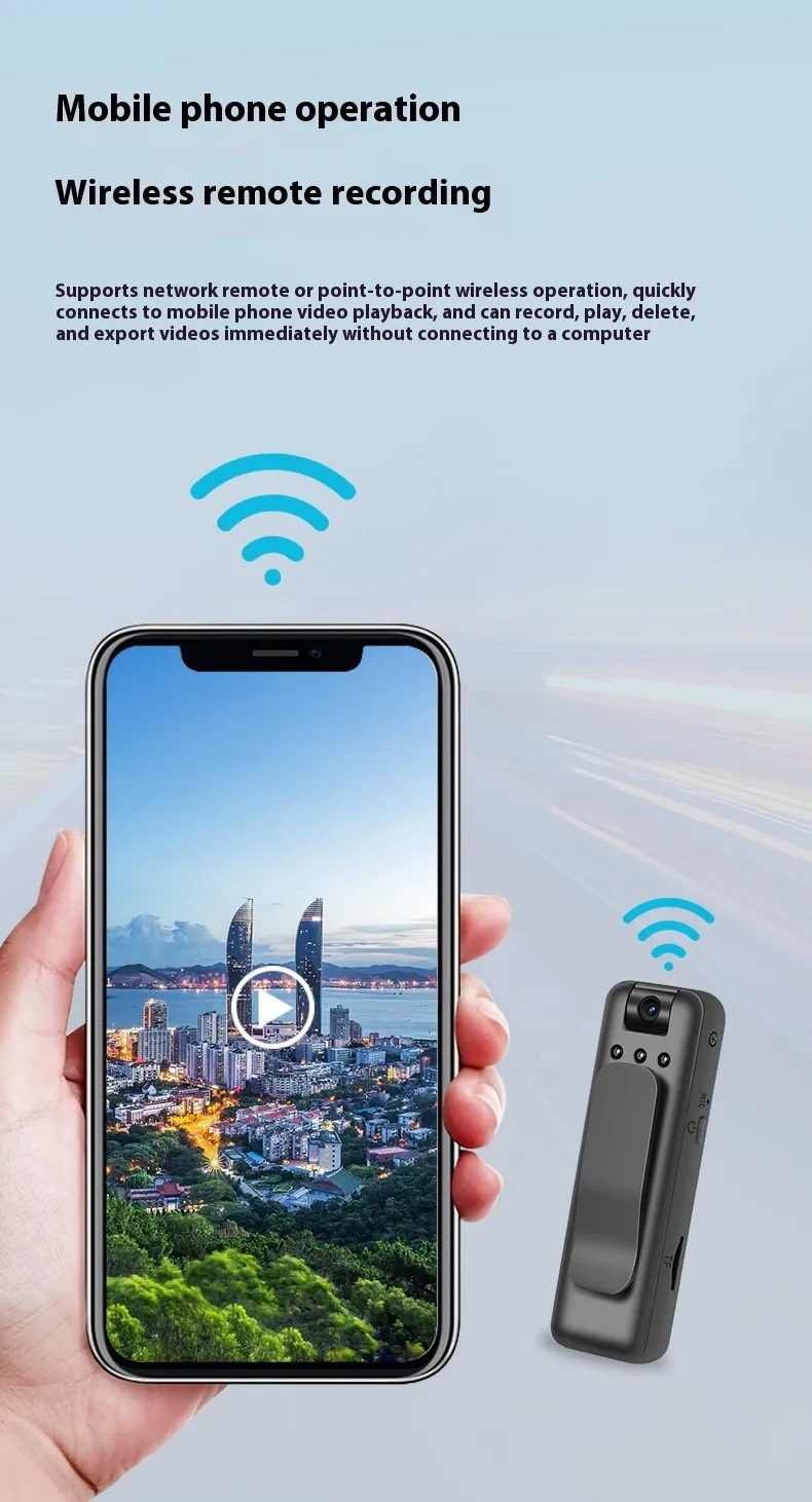 Perfect for discreet use, this back splint-style surveillance camera is ideal for professionals needing unobtrusive recording options. Its portable size, WiFi capability, and modern interface make it a smart choice for modern security needs—ensuring peace of mind without drawing attention.