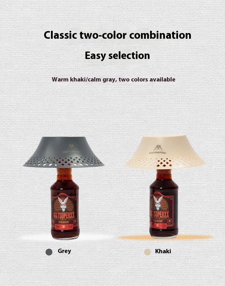 Illuminate your outdoor adventures with our stylish Wine Bottle Lampshade Camping Lantern. Designed to combine elegance with functionality, this lantern features a unique wine bottle-shaped lampshade available in beige and gray, adding a touch of sophistication to your camping gear.