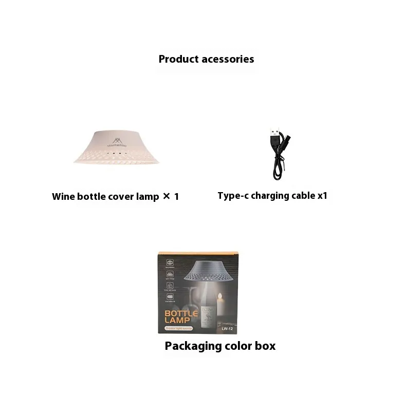 Illuminate your outdoor adventures with our stylish Wine Bottle Lampshade Camping Lantern. Designed to combine elegance with functionality, this lantern features a unique wine bottle-shaped lampshade available in beige and gray, adding a touch of sophistication to your camping gear.
