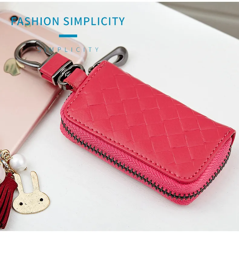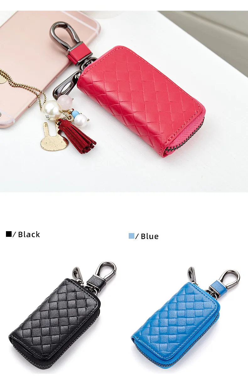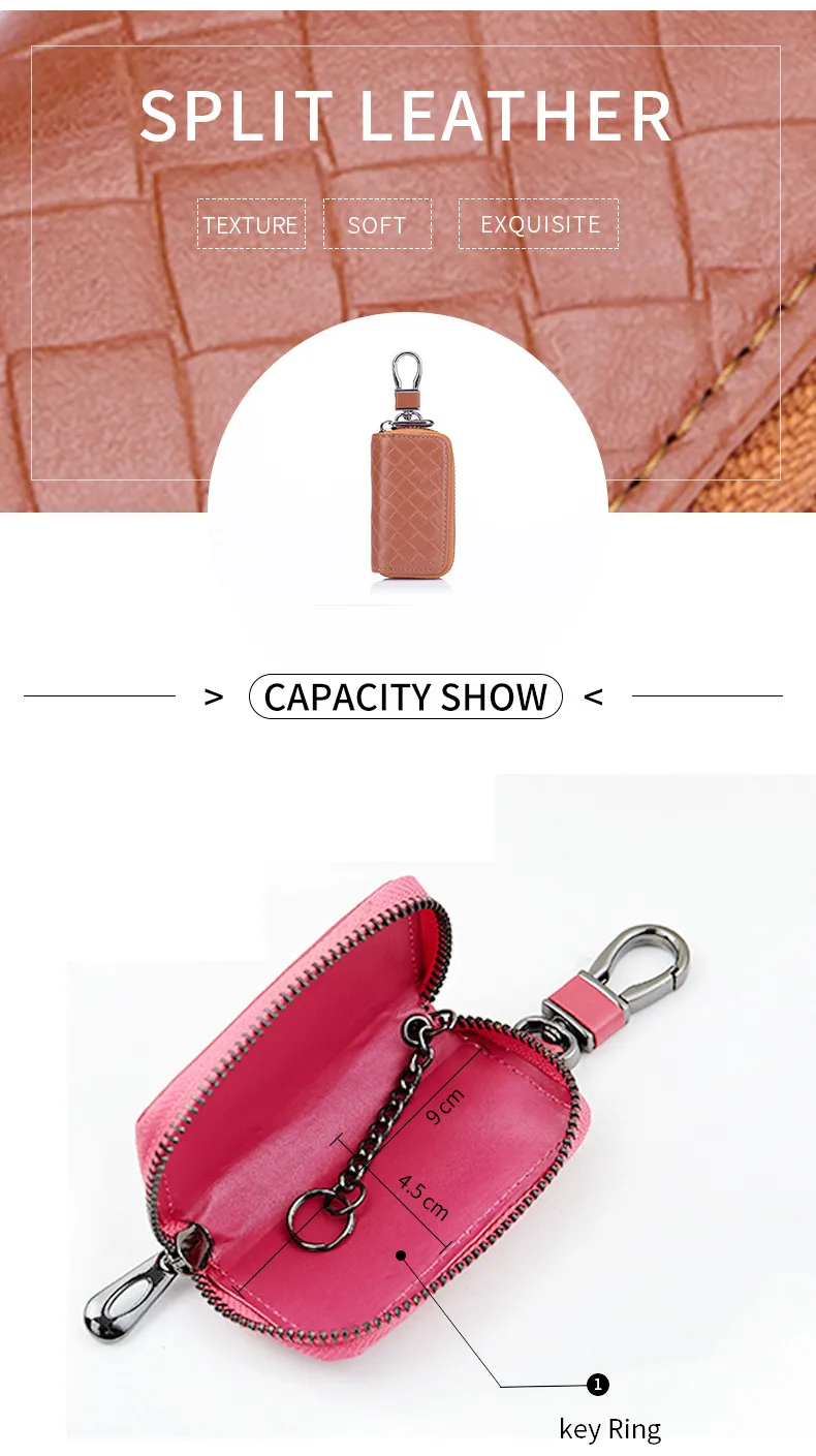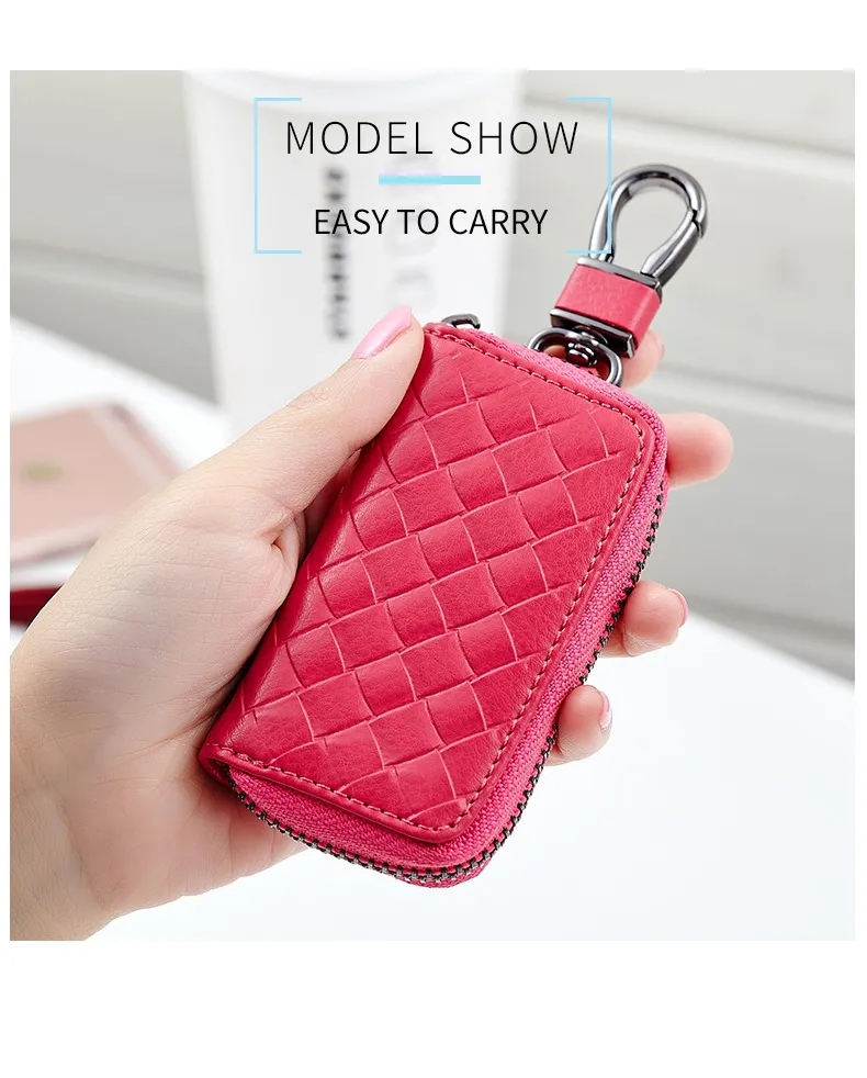 Woven Leather Car Key Case – Stylish Key Holder Organizer
