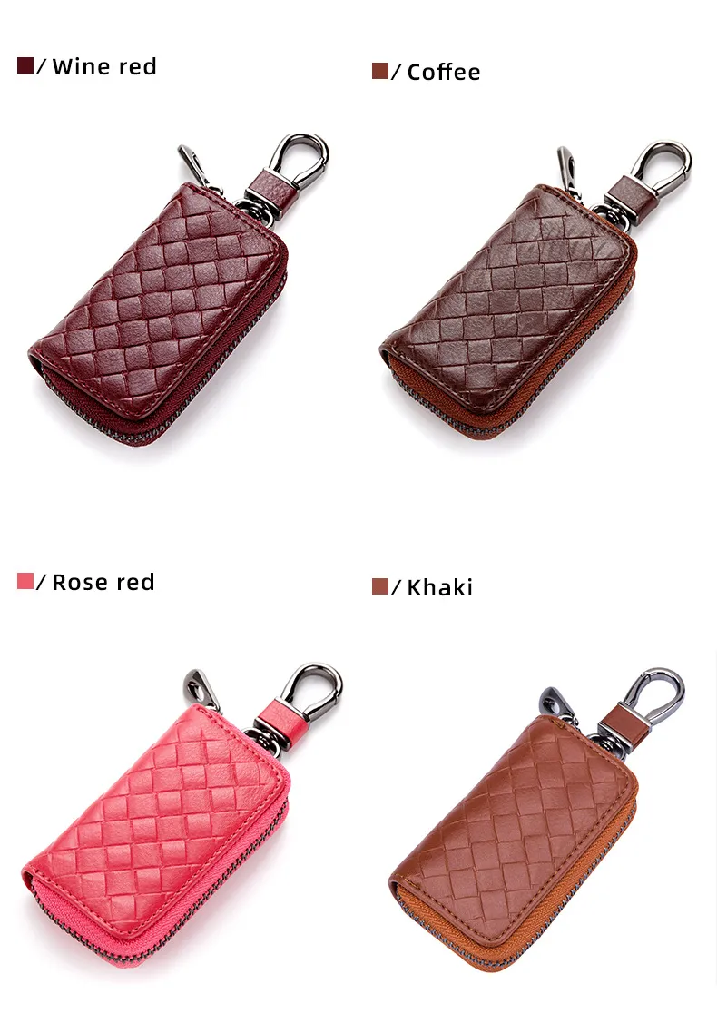 Woven Leather Car Key Case – Stylish Key Holder Organizer