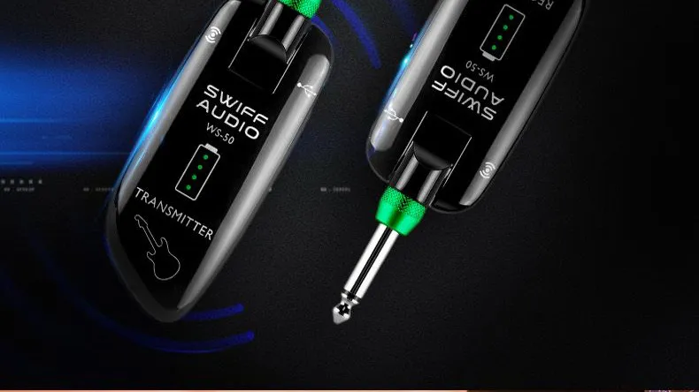 WS-50 Wireless Guitar Transmitter Receiver | UHF 100 Channel Audio System for Electric Guitar, Bass & Musical Instruments – Low Latency, 50m Range