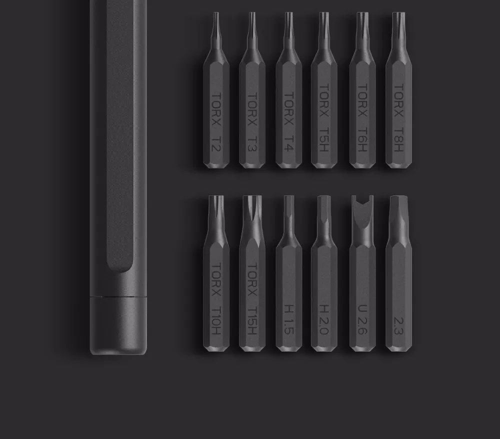 The kit includes 24 high-precision bits with double anti-rust treatment, ensuring durability and reliability for repairing smartphones, laptops, cameras, watches, and other electronics. Each bit is tough yet flexible, providing maximum efficiency without slipping or wearing down.