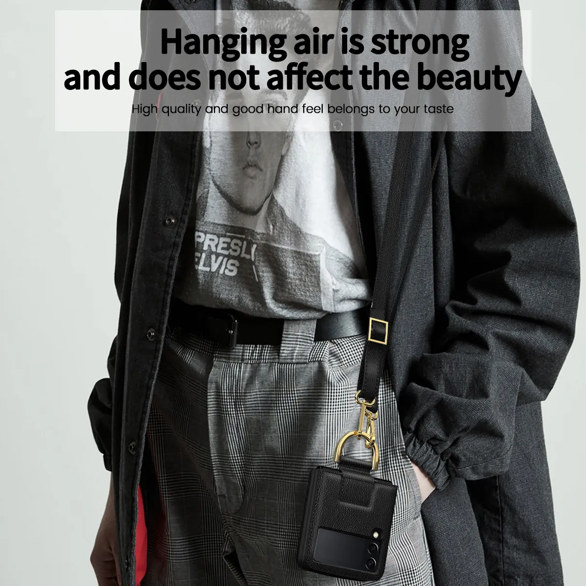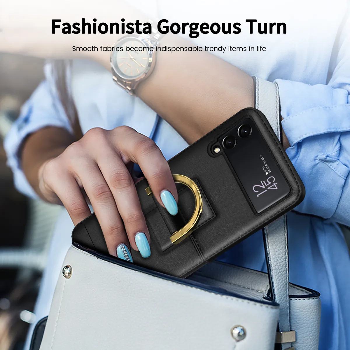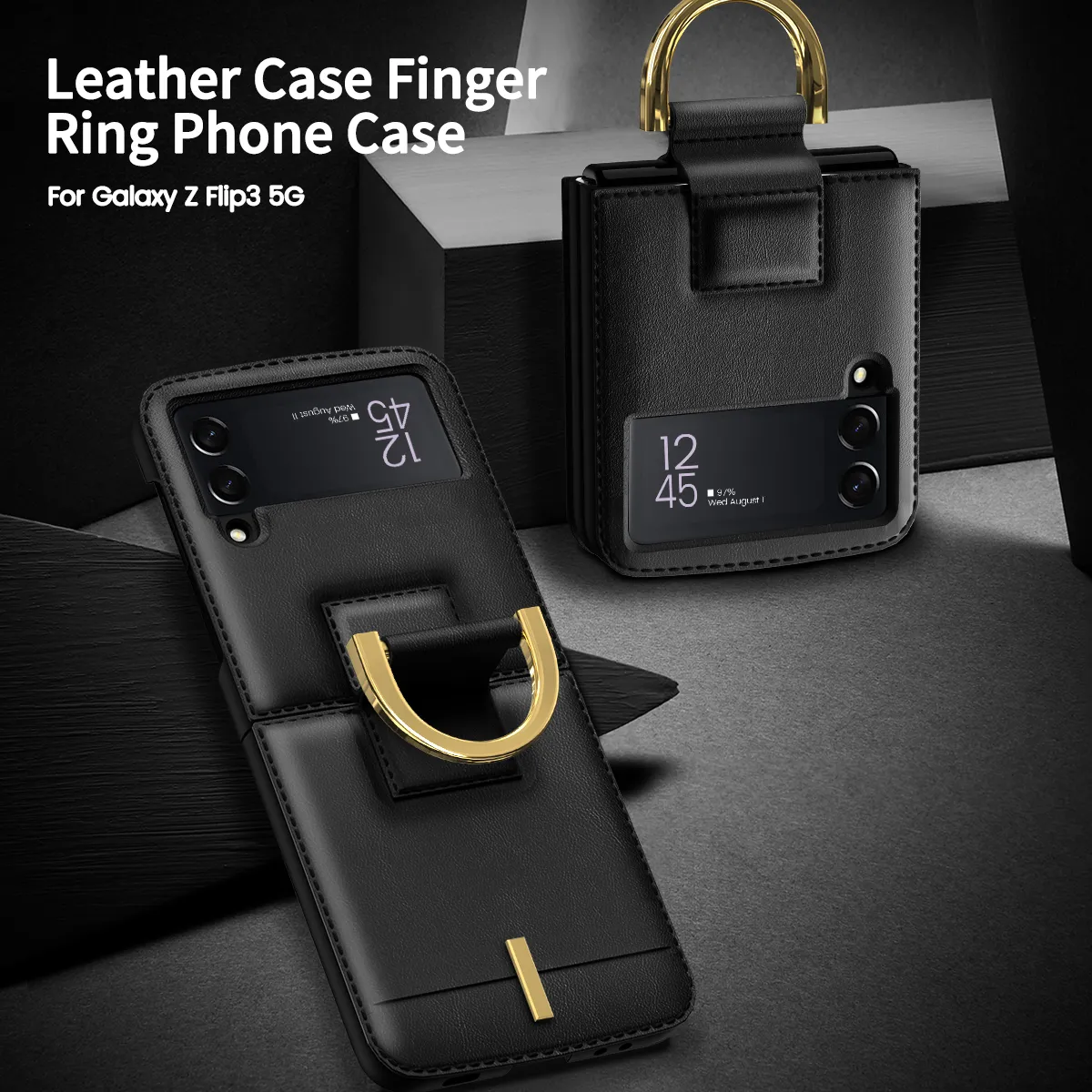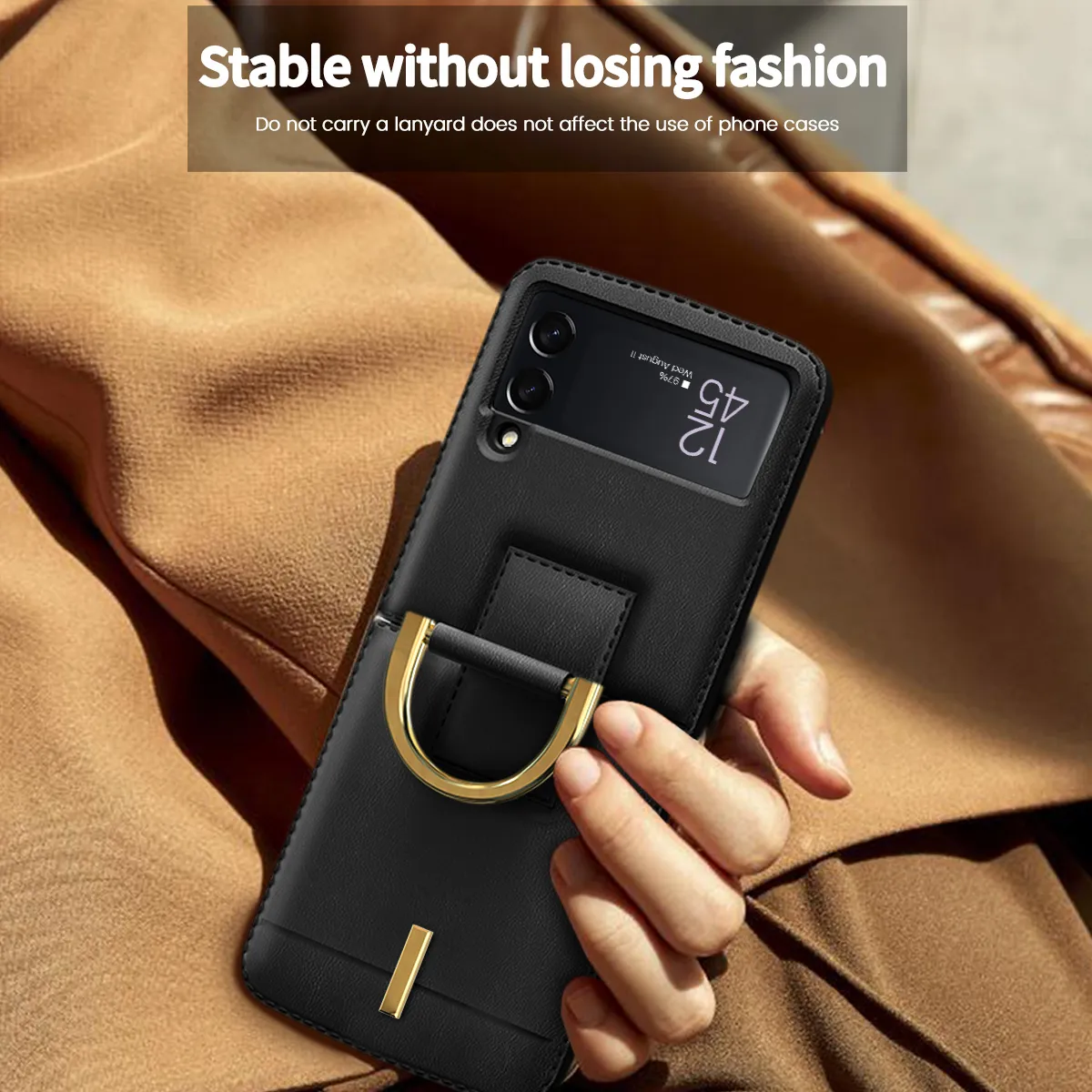 Z Flip 3 Leather Case – Anti-Drop Ring Strap Flip Cover