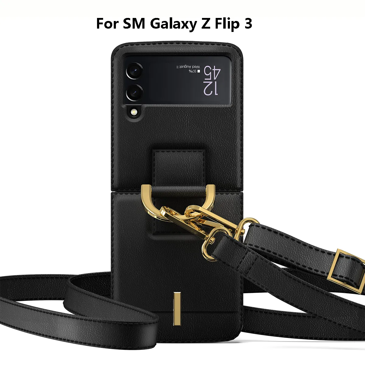Z Flip 3 Leather Case – Anti-Drop Ring Strap Flip Cover