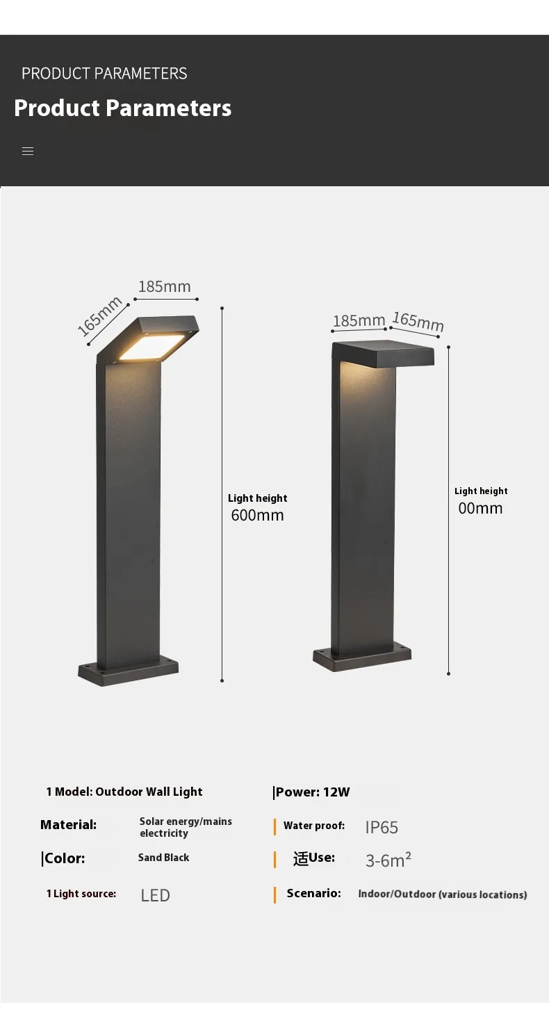 Crafted from durable aluminum alloy and rated IP55 for water and dust resistance, this lamp ensures long-lasting performance in outdoor environments. The lamp features multiple power-on models and options, including a straight 7-word design or an oblique 7-word design, both standing 60cm tall to suit a variety of garden layouts.
